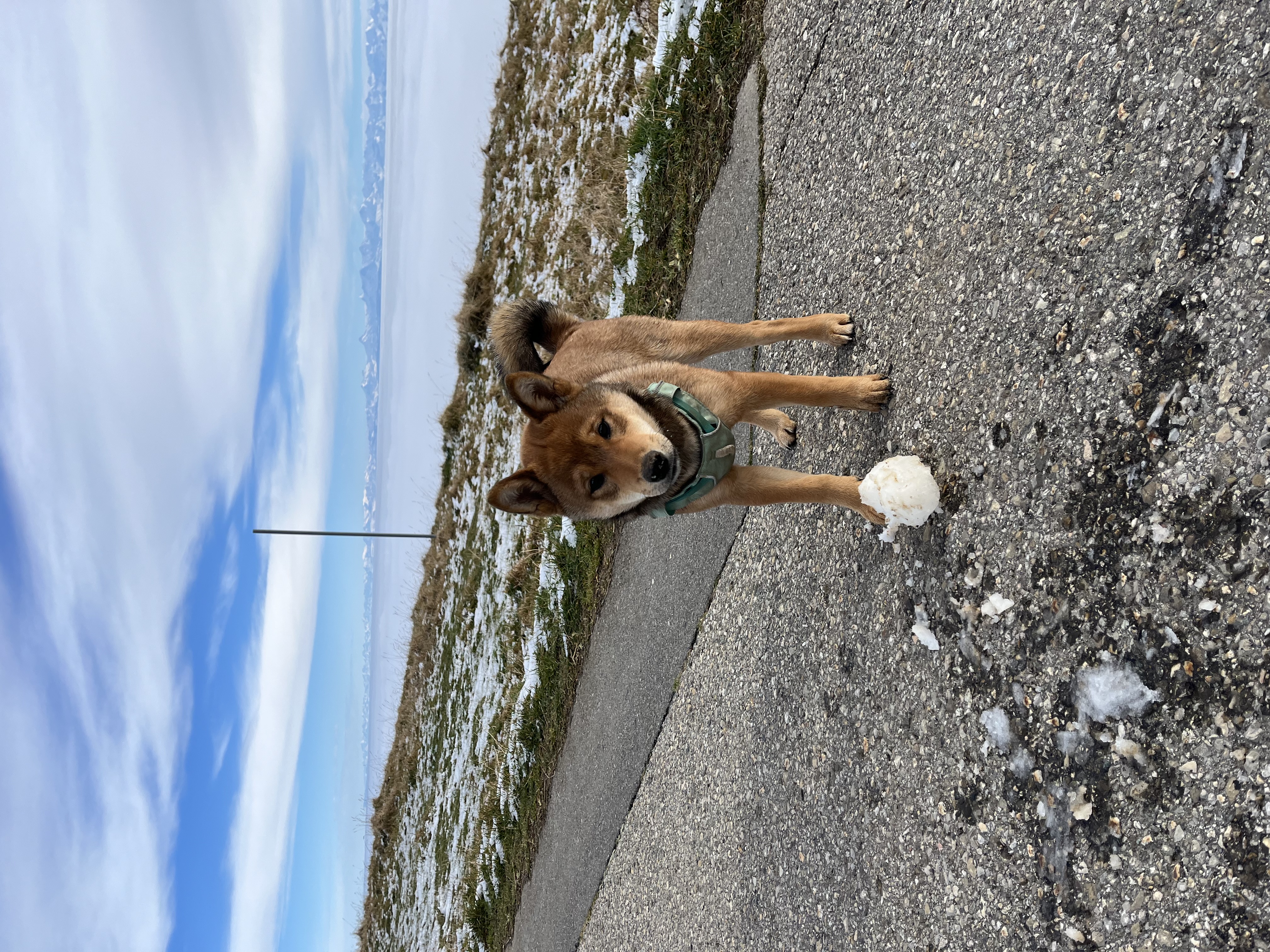 Hello la famille moi c’est Aika je suis tout contente d’explorer mon nouveau chez moi en Suisse avec la tombée des premiers flocons ❄️⛄️