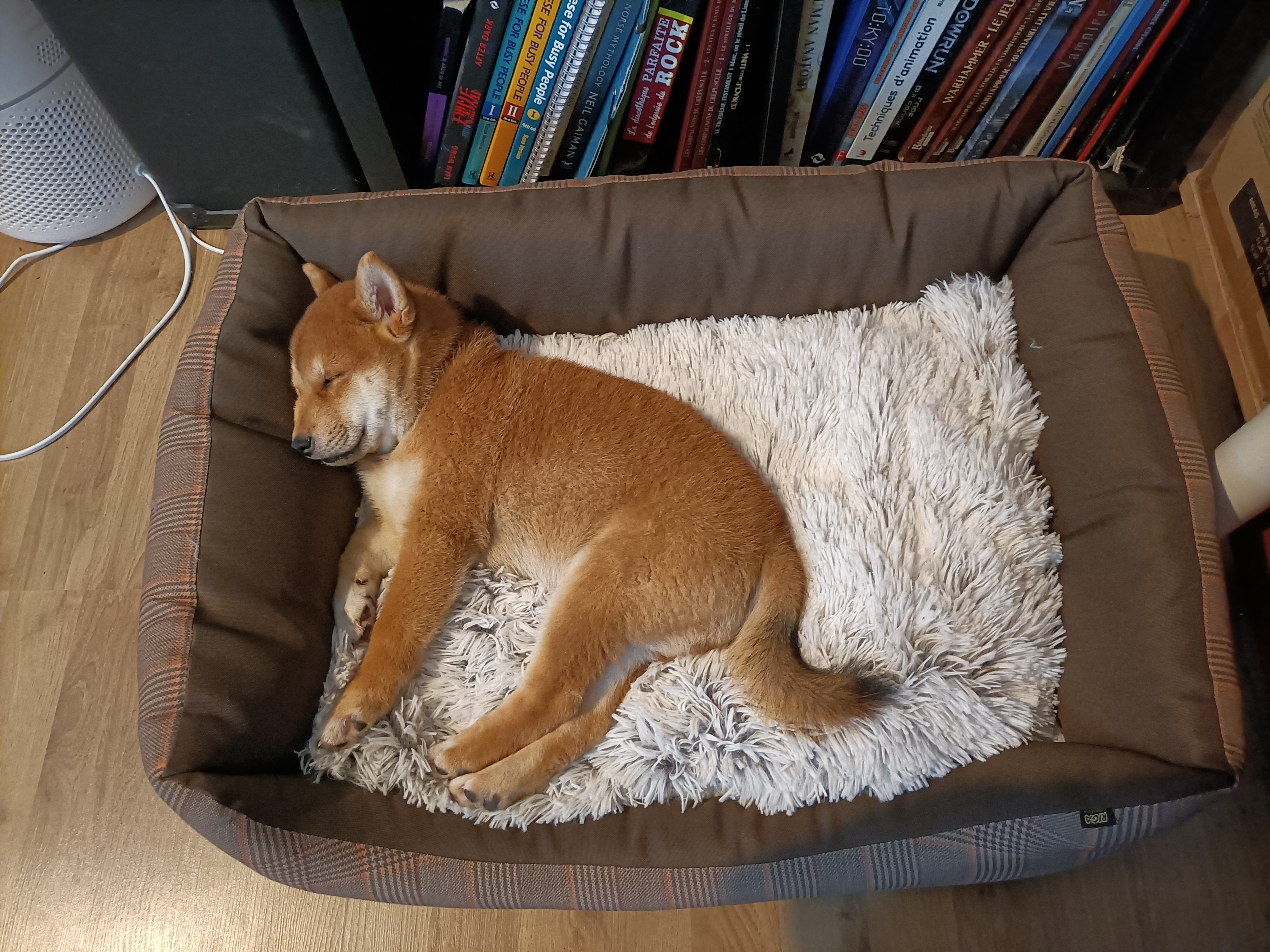 Voilà notre petit AKITO adopté au Temple Okami né le 27/06/1924 que nous avons adopté début novembre. Nous avons commencé aussitôt l’apprentissage de la promenade avec la laisse et la plupart du temps il est très obéissant. Il est rusé car quand il fait bien, il s’assoit et attend une petite récompense. Il fait fureur dans ma ville et en promenade il a droit à beaucoup de compliments qu’il accepte. Il est un peu cabotin. La photo de sa première sortie.