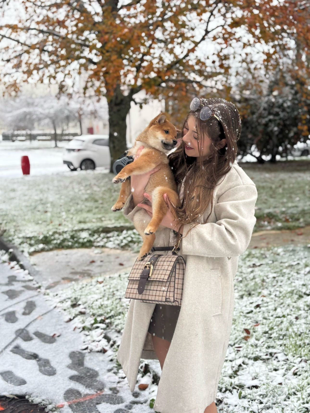 Hello la famille moi c’est Aika je suis tout contente d’explorer mon nouveau chez moi en Suisse avec la tombée des premiers flocons ❄️⛄️