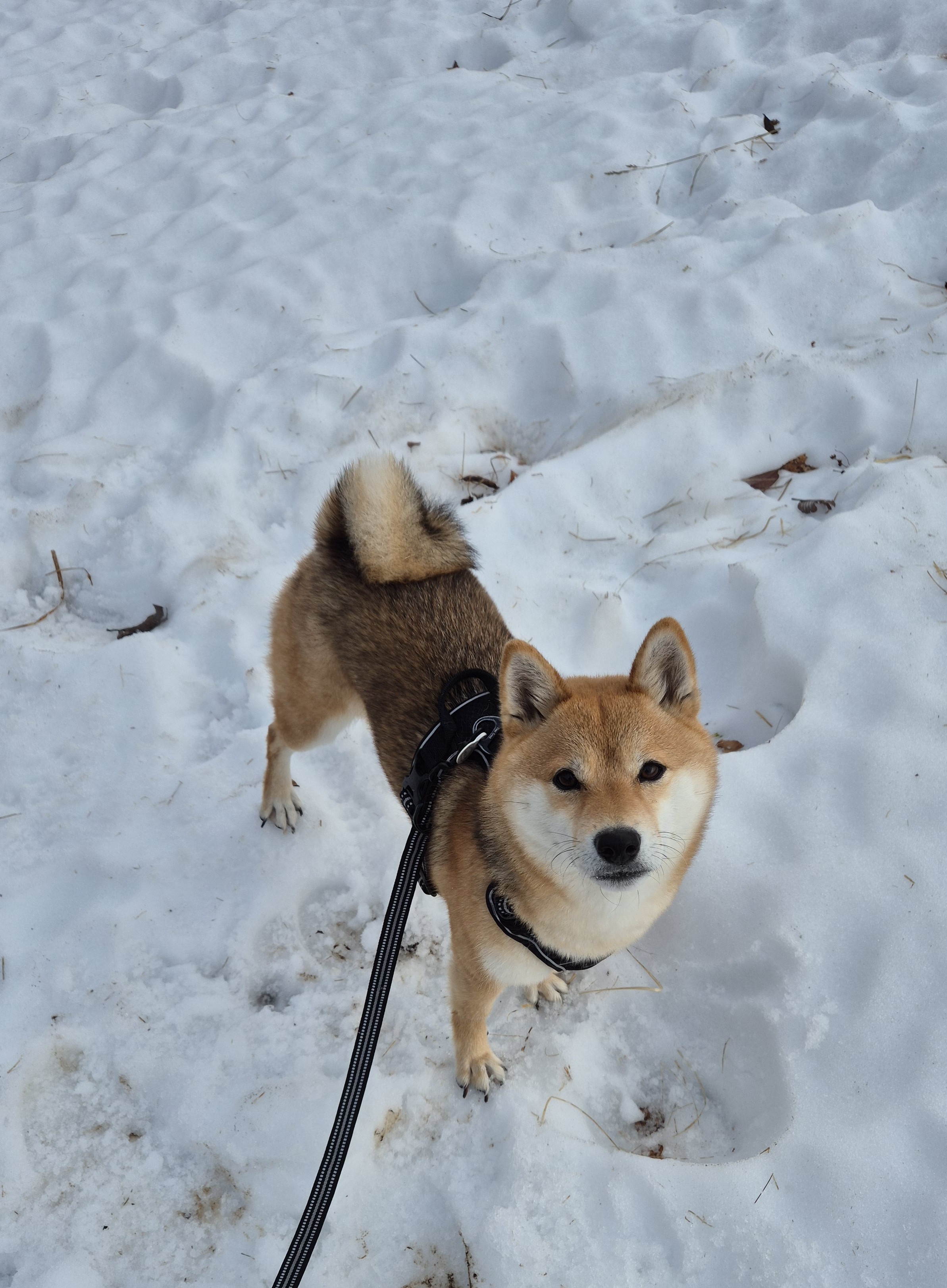 Yoshi a eu le droit à une balade matinale sous la neige ❄️😊